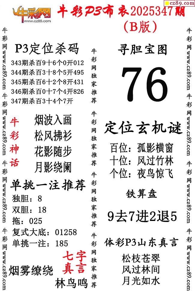 牛彩P3布衣25年347期AB版图谜(精华版)